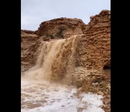 وقال المغرد سلطان العثمان، في مقطع فيديو نشره على حسابه الرسمي بتويتر: “شلالات الشعب شرق تمير صباح اليوم الأحد 2 يناير 2022 ما شاء الله لا قوة إلا بالله”.