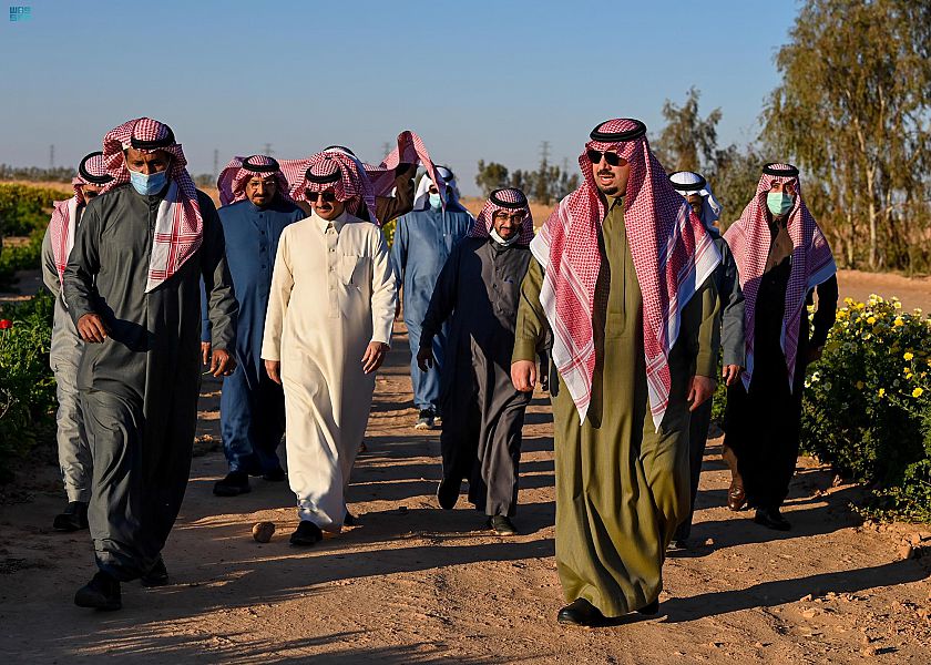وقف صاحب السمو الملكي الأمير فيصل بن خالد بن سلطان بن عبدالعزيز أمير منطقة الحدود الشمالية على مزرعة المواطن صالح الفريح .