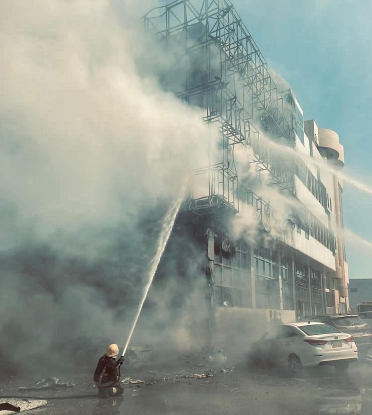 أخمد الدفاع المدني في الخبر حريقًا في مبنى تجاري بحي الخبر الشمالية.