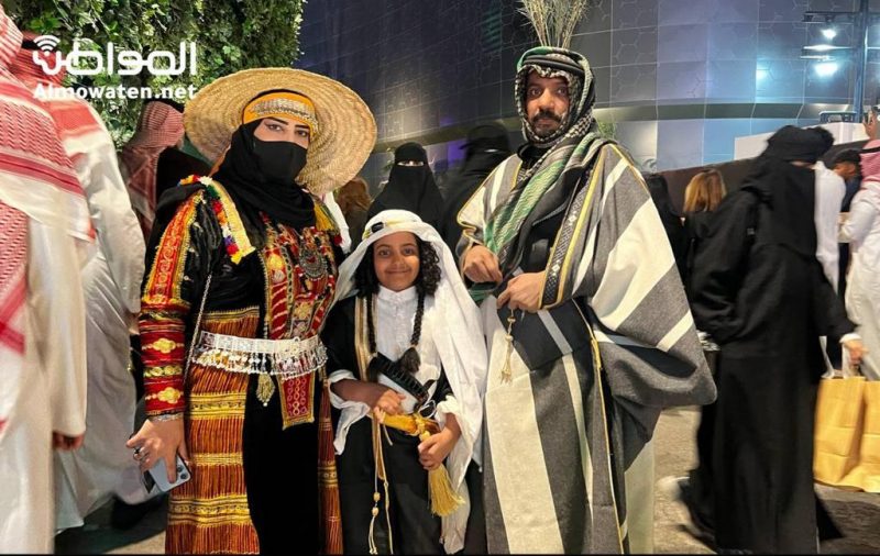 وحرص العديد من المواطنين من الرجال والنساء والأطفال على ارتداء الزي السعودي التقليدي بحسب المناطق المختلفة في دلالة على اتصال التاريخ السعودي والاعتزاز بالزي الوطني الشعبي.