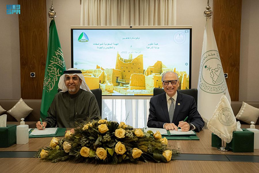 وقعت هيئة تطوير بوابة الدرعية مذكرة تفاهم مع الهيئة السعودية للمواصفات والمقاييس والجودة، بهدف إيجاد تعاون إستراتيجـي بينهما، بحكم مسؤولية هيئة تطوير بوابة الدرعية في الإشراف والتنظيم وتنمية المجتمع المحلي وتعزيز البنية الاقتصادية في منطقة الدرعية ومسؤولية الهيئة السعودية للمواصفات والمقاييس والجودة بإصدار المواصفات القياسية وأنظمة وأدلة الجودة وتقديم المطابقة، وتوفير الحماية الصحية والبيئية والسلامة العامة، وضمان جودة المنتجات الوطنية.