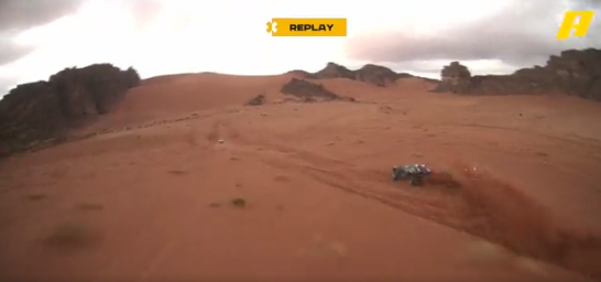 وعرضت قناة “إم بي سي أكشن”، عبر حسابها في “تويتر”، جانبًا من التصادم، حيث خرج ناصر العطية عن المسار ثم حاول العودة، وأثناء محاولته العودة اصطدم بسيارة السائق كارلوس ساينز.