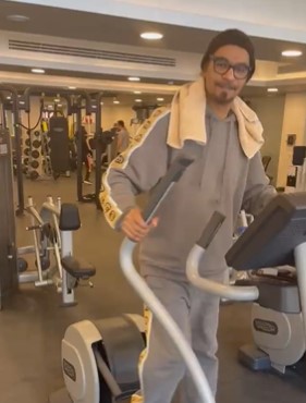 ونشر الفنان المحبوب مقطع فيديو له من داخل إحدى الصالات الرياضية وعلق عليها بالقول : وقت الرياضة.