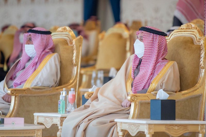 ووصل ولي العهد إلى مقر الحفل في الصياهد حيث أقيم حفل خطابي بهذه المناسبة تخلله استعراض للإبل الفائزة.