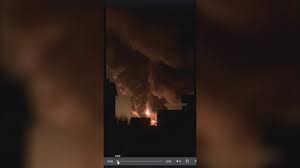 فيما أظهرت الصور ومقاطع الفيديو على الإنترنت تصاعد ألسنة اللهب إلى السماء.