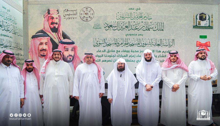 تقديرًا وعرفانًا لما قدموه من بطولات وتضحيات في حماية الثغور بالحد الجنوبي؛ دشّن الرئيس العام لشؤون المسجد الحرام والمسجد النبوي الشيخ الدكتور عبدالرحمن السديس اليوم، مبادرة إهداء ماء زمزم لجنودنا البواسل تثمينًا لبطولاتهم في دحر الأعداء وحماية الوطن ومقدراته.