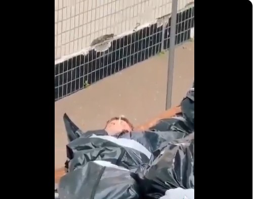وتداول المغردون الفيديو على خلفية الحرب الروسية الأوكرانية لكن في وقت لاحق تم الكشف عن حقيقة المقطع الذي يظهر رجلًا يرقد رجل داخل أسود وذراعه في الخارج فيما يضع سيجارة مشتعلة في فمه يتصاعد منها الدخان، فيما يقوم شخصان آخران بترتيب أكياس الجثث .