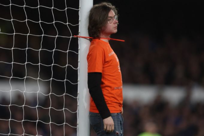 دائمًا يحدث داخل المناسبات الرياضية الشهيرة كمباريات كرة القدم، حيث تتواجد الكاميرات، والبث المباشر، أمور خارجة عن المألوف من بين المشجعين، إما للفت الانتباه، أو للمطالبة بأمور سياسية أو معيشية أو غيرها، ففي واقعة غريبة حدثت في الدوري الإنجليزي الممتاز، أقبل أحد المشجعين الغاضبين على اقتحام أرض الملعب وشنق نفسه بعمود المرمى، وذلك خلال مواجهة إيفرتون ونيوكاسل يونايتد.