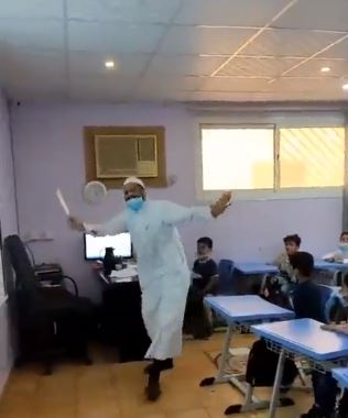 وتداول رواد مواقع التوصل مقطع فيديو يظهر أحد معلمي المرحلة الابتدائية وهو يشرح دروس اللغة العربية مستخدمًا ذراعيه وجسده بطريقة غريبة إلى حد ما، في توصيل طريقة تعلم نطق الحروف.