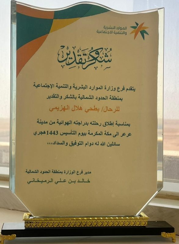 كرم مدير عام فرع وزارة الموارد البشرية والتنمية البشرية بمنطقة الحدود الشمالية خالد بن علي الرميخاني، الرحالة بطحي هلال الهزيمي.