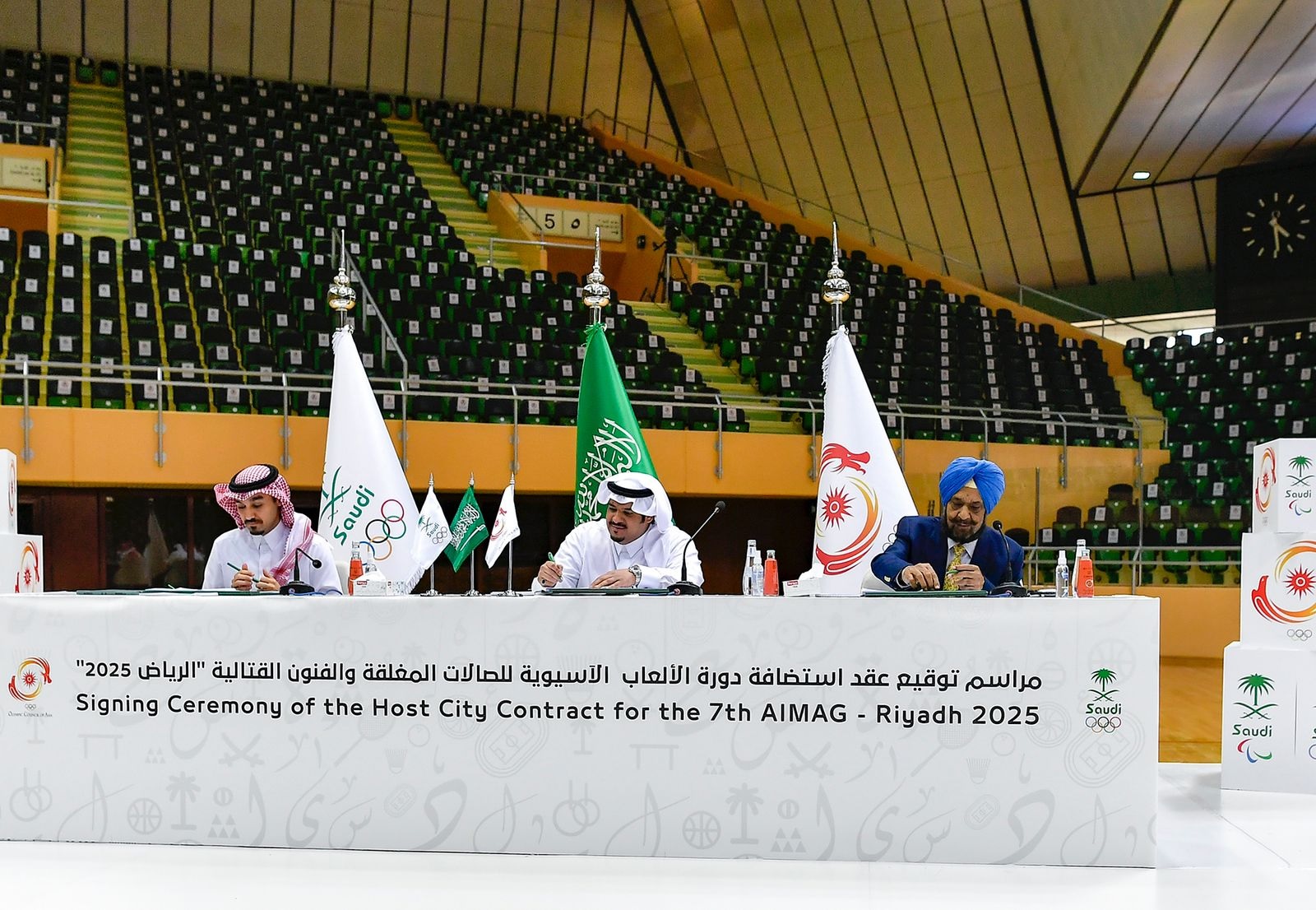 وقع وزير الرياضة، رئيس اللجنة الأولمبية والبارالمبية السعودية، الأمير عبدالعزيز بن تركي الفيصل اتفاقية استضافة دورة الألعاب الآسيوية للصالات المغلقة والفنون القتالية.