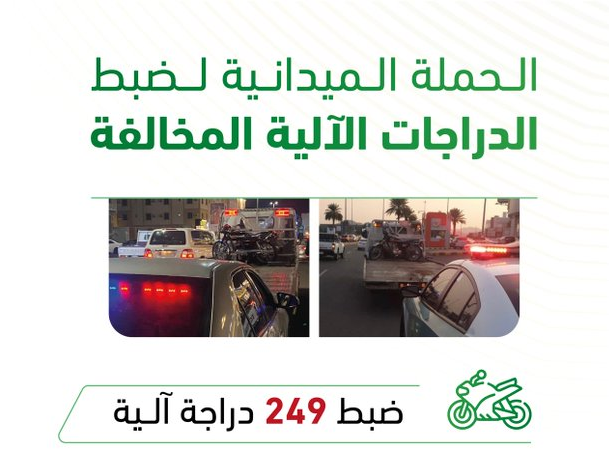 تمكنت إدارات المرور بمختلف مناطق المملكة من ضبط 249 دراجة آلية مخالفة بعدد من المناطق.