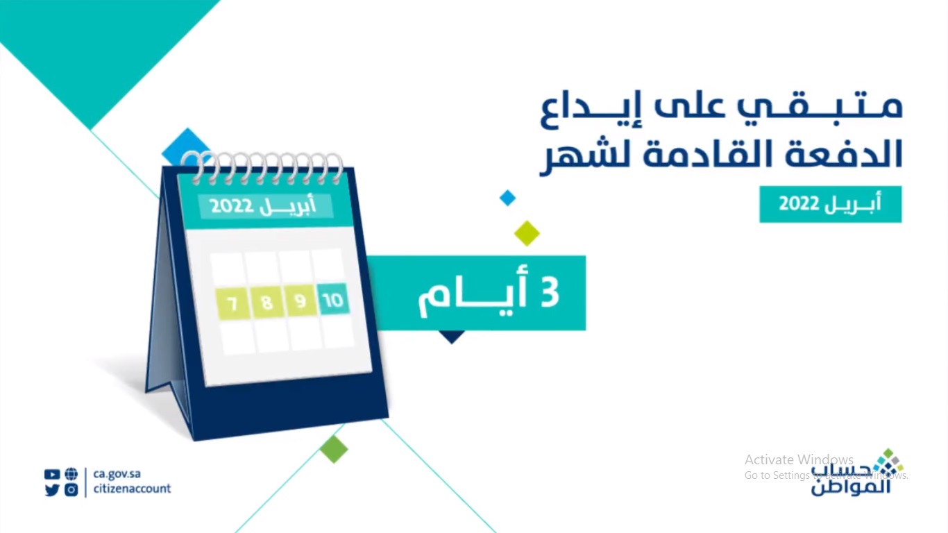 أكد حساب المواطن أنه تبقى 3 أيام على إيداع دعم الدفعة الـ53، حيث يتم صرف الدعم بشكل دوري في يوم 10 من كل شهر ميلادي وهو ما يوافق الأحد المقبل.