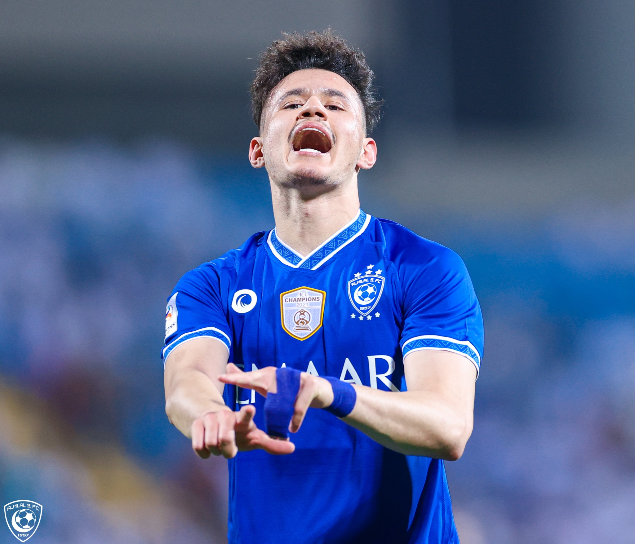 وسجل المهاجم عبدالله الحمدان الهدف الأول لصالح الهلال بعد تمريرة سحرية من البريك، أرسلها داخل منطقة جزاء الريان، ليكون الحمدان في مواجهة المرمى ويسدد الكرة مباشرة في الشباك، ليتقدم للزعيم بـ أول أهداف اللقاء، ويحقق الأفضلية لـ الأزرق على حساب نظيره القطري.
