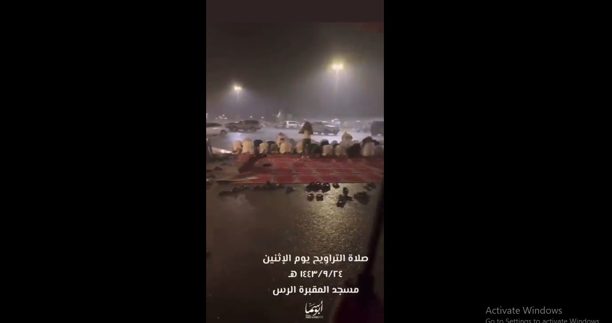 ونشر أستاذ المناخ بجامعة القصيم سابقًا عبدالله المسند، عبر حسابه الرسمي بموقع تويتر، الفيديو التي هطلت على المصلين أثناء صلاة تراويح ليلة 25 رمضان في مسجد المقبرة بالرس.