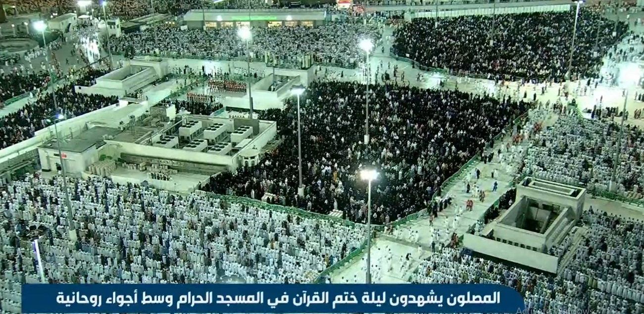 ويشهد المسجد الحرام، خلال ليلة ختم القرآن الكريم من الشهر الفضيل، توافد الكثير من المصلين والمعتمرين والزائرين لأداء مناسكهم، في لحظات إيمانية وروحانية يعيشها زوار البيت العتيق.
