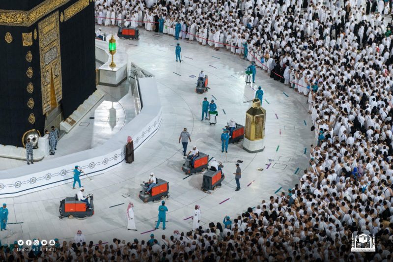 أنهت الرئاسة العامة لشؤون المسجد الحرام والمسجد النبوي، ممثلة في وكالة الرئاسة العامة للخدمات والشؤون الميدانية وتحقيق الوقاية البيئية، غسيل المسجد الحرام وساحاته خلال (40) دقيقة بعد صلاة المغرب ليلة (27) من شهر رمضان المبارك.