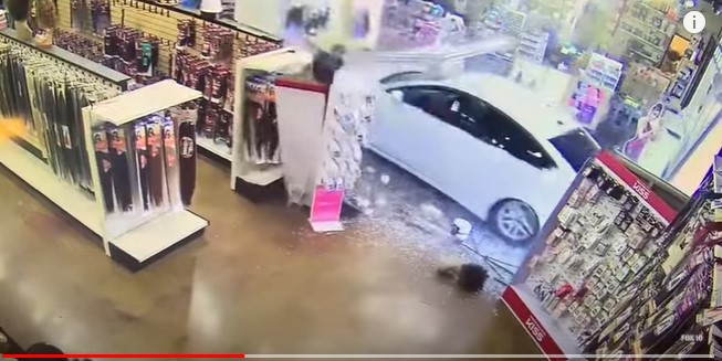 وثق مقطع فيديو متداول لحظة اقتحام سيارة مسرعة أحد المتاجر بالقرب من ميل أفينيو وساذرن في مدينة تيمب بولاية أريزونا الأمريكية.