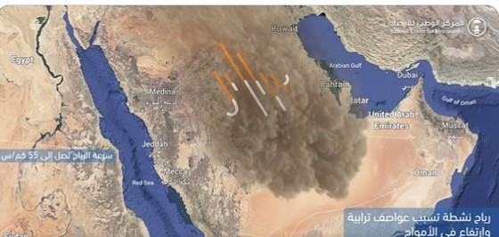 أصدر المركز الوطني للأرصاد تنبيهًا بشأن وصول سرعة الرياح إلى 55 كلم/ ساعة، مع احتمالية تكون عاصفة ترابية اليوم على بعض مناطق المملكة.