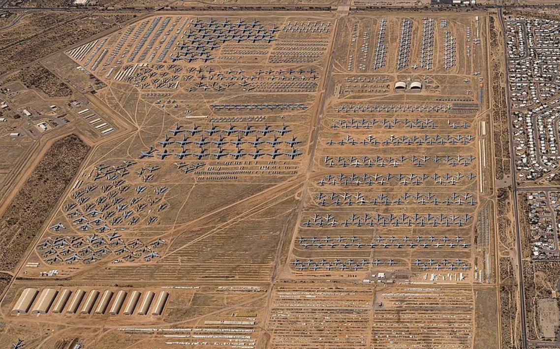 وتنتظر مئات الطائرات مصيرها في أن يأكلها الصدأ أو أن يتم تفكيكها، ويتم تنظيم كل صف حسب الطراز والحجم، بما في ذلك الطائرات المدنية التي انخفض الطلب عليها نتيجة انخفاض الطلب على السفر الجوي بسبب جائحة كوفيد-19.