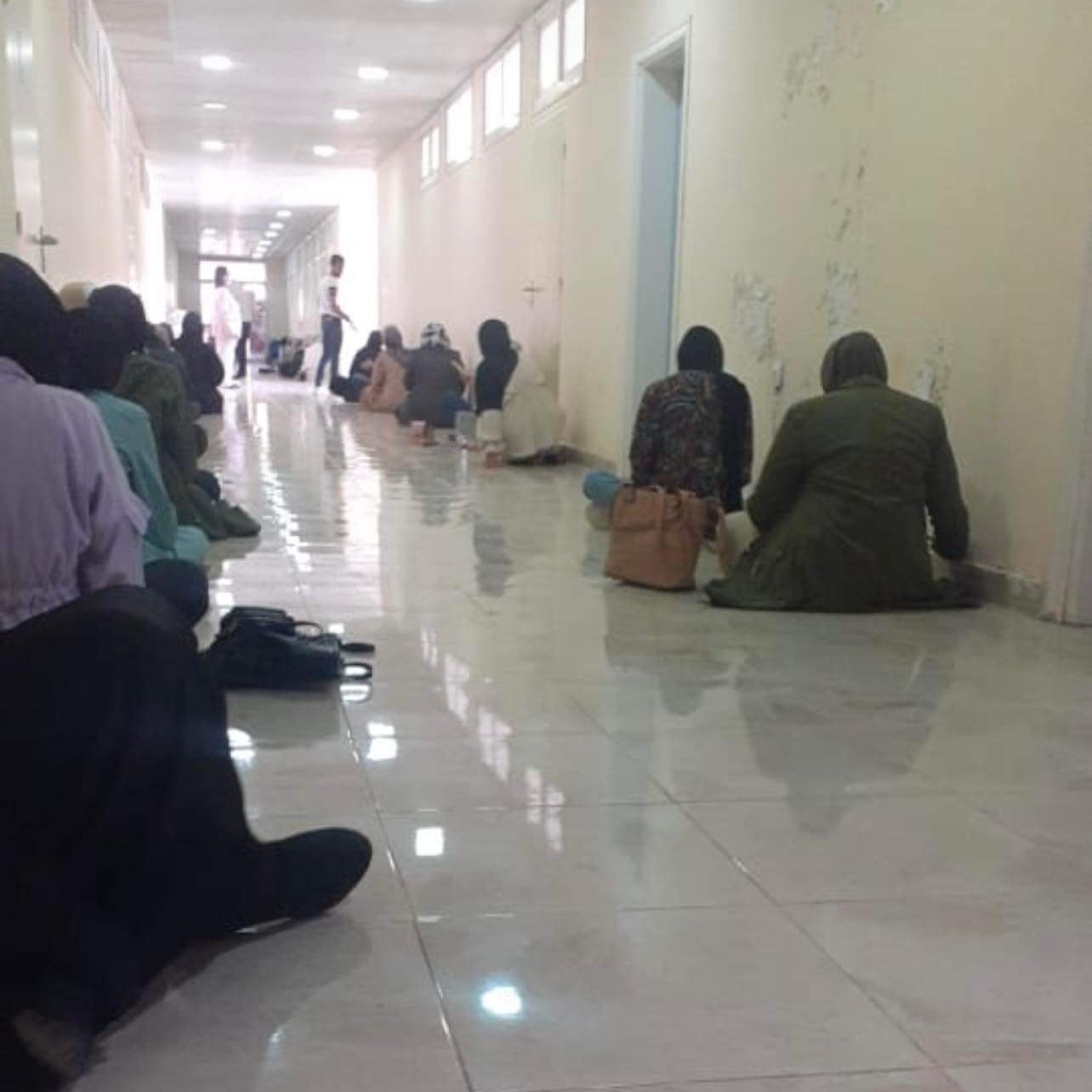 وأظهرت صور متداولة على مواقع التواصل الطلاب والطالبات وهم يجلسون على الأرض في الممرات والمداخل ويؤدون الاختبارات.