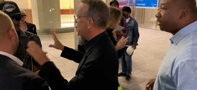 وبعدما أسرع توم هانكس لمعرفة ما إذا كانت ريتا بخير، التفت بعد ذلك إلى الحشود وصرخ بغضب في جمهوره، ويبدو أن أحدهم قال كنا نريد الاقتراب منك، فأجاب: بضرب زوجتي؟.