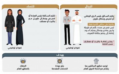 وكانت الهيئة العامة للنقل أعلنت أن الزي الموحد متطلب أساسي لممارسة هذه الأنشطة وفقاً لأحكام اللائحة المنظمة لنشاط الأجرة ووسيط الأجرة والتوجيه.