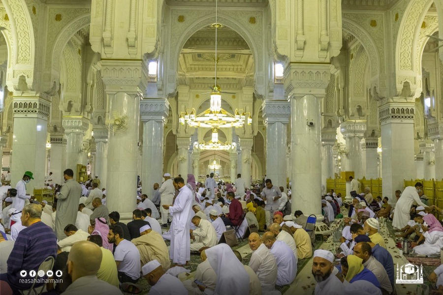 وزعت الرئاسة العامة لشؤون المسجد الحرام والمسجد النبوي، ممثلة في وحدة السفر وشؤون الصائمين، عددًا من وجبات الإفطار على الصائمين المصلين وضيوف الرحمن والعاملين بالمسجد الحرام منذ غرة شهر ذي الحجة وحتى يوم عرفة والبالغ عددها (50) ألف وجبة جافة.