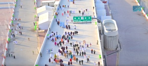 يواصل حجاج بيت الله الحرام التدفق على جسر الجمرات لاستكمال نسكهم، وسط انسيابية كبيرة في حركة الحشود.
