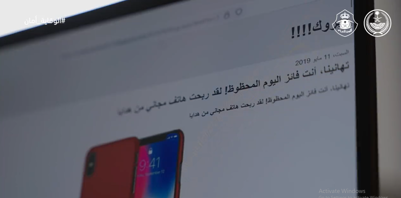 وأظهر الفيديو فتاة تبحث عن وصفة للطعام على مواقع البحث وحين دخولها إلى أحد المواقع بالإنترنت ظهرت لها رسالة تهنئة بالفوز بهاتف مجاني، شريطة إدخال البيانات للحصول عليه.