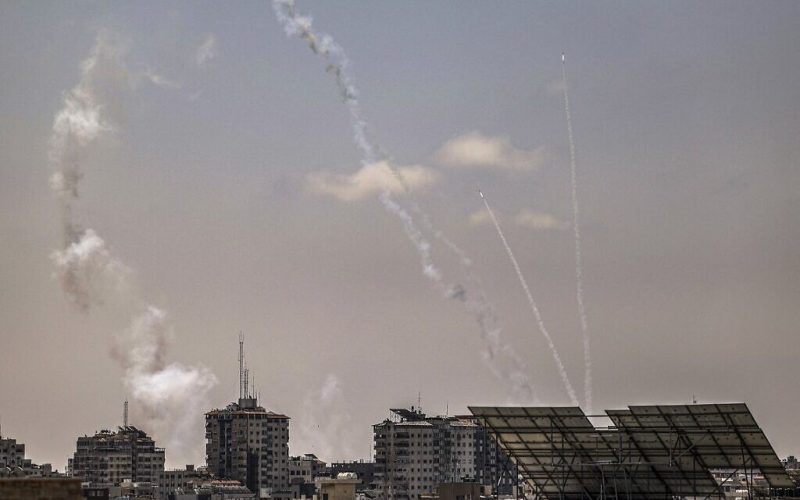 وثق مقطع فيديو لحظة إطلاق عشرات الصواريخ من قِبل المقاومة الفلسطينية في قطاع غزة لاستهداف مستوطنات الاحتلال الإسرائيلي، لكن في المقابل، حاولت منظومة القبة الحديدية التصدي لها.