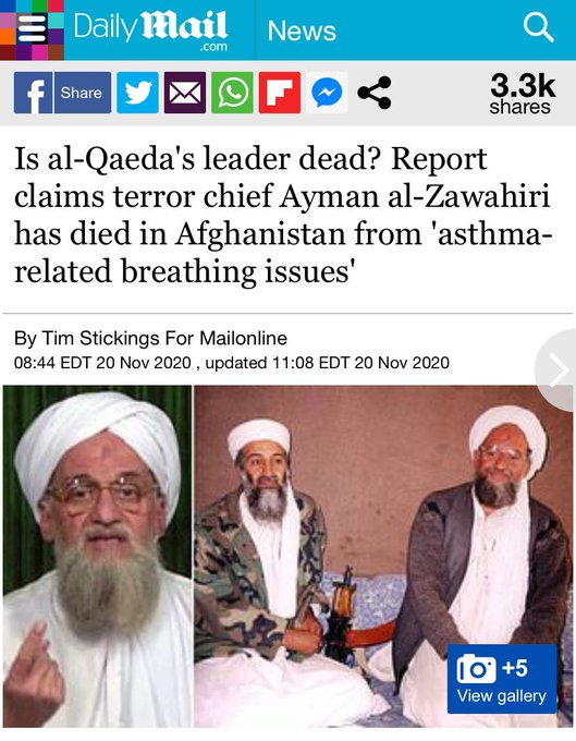 كتبت هذه اللحظة نهاية 21 عامًا من المطاردة من قبل المخابرات والجيش الأمريكي لأيمن الظواهري؛ وذلك بعد أن ثبت أنه كان العقل المدبر لهجوم 11 سبتمبر، بالإضافة إلى عدة تفجيرات أخرى استهدفت السفارات الأمريكية في تنزانيا وكينيا وتفجير المدمرة الأمريكية يو إس إس كول قبل سنوات.