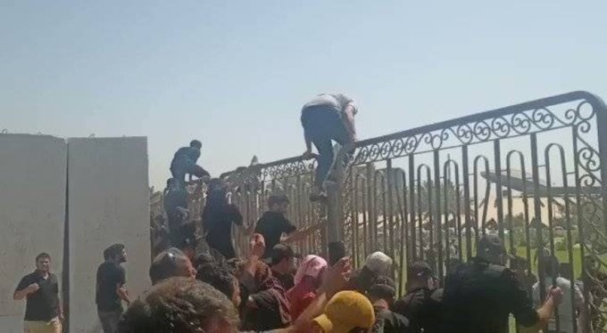 وتجمع أنصار الصدر قرب القصر الرئاسي وقاموا بإزالة الحواجز الخرسانية التي تعيق الوصول إلى القصر واقتحموه ودخلوا إلى المسبح الخاص بالقصر بحسب المقاطع المتداولة.