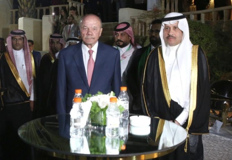 وبدأ الحفل المعد بهذه المناسبة بالسلامين الوطنيين السعودي والأردني.