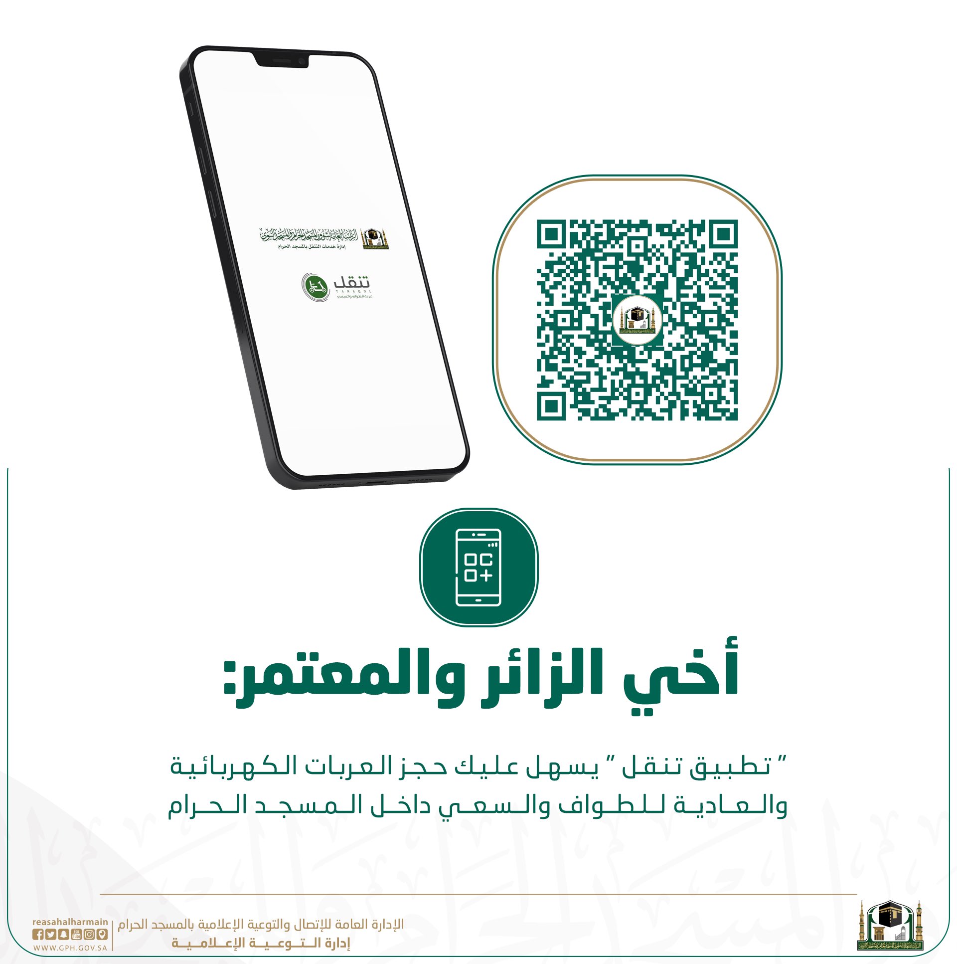 تطبيق تنقل لحجز العربات الكهربائية للطواف والسعي بالمسجد الحرام