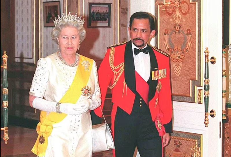 وكان يتمتع سلطان بروناي بعلاقة وثيقة مع الملكة مثل والده من قبله، وحصل على لقب فارس من قبل جلالة الملك، والتقى كلاهما في عدة مناسبات خلال فترة حكمهما.