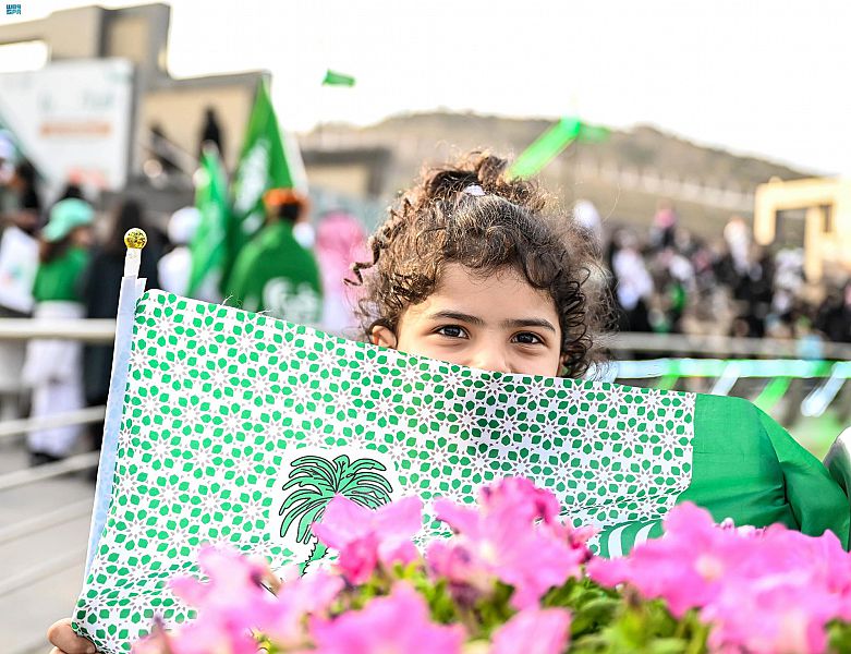 وتعالت أصوات الأطفال بالأهازيج الوطنية، واصطفوا على جنبات ممرات الفعاليات حاملين أعلام المملكة ترفرف بكل شموخ وعزة.