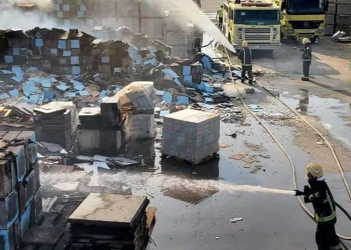 حريق في مستودع سيراميك بالدمام