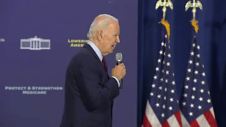 وتظهر اللقطات بايدن وهو يسير ويتكلم على خشبة المسرح عن خفض تكلفة الأدوية الموصوفة لكبار السن، وفي إحدى اللقطات يفقد توازنه ويبدو أنه داس على شيء ما، وبعد ذلك واصل حديثه.