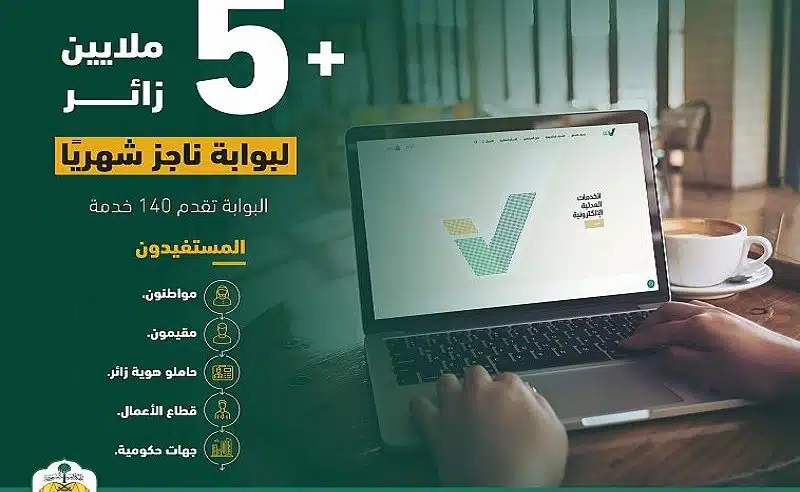 أوضحت وزارة العدل، أن عدد زوار بوابة ناجز الإلكترونية بلغ أكثر من 5 ملايين زائر شهريًا.