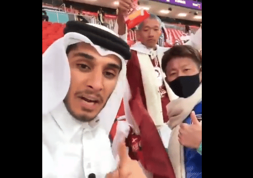 وعرض أحد الأشخاص القطريين لقطات لمشجعي اليابان وهم ينظفون الملعب حيث توجه لهم بسؤال : ” لماذا تفعلون ذلك ومنتخب بلادكم ليس طرفًا في المباراة؟”.