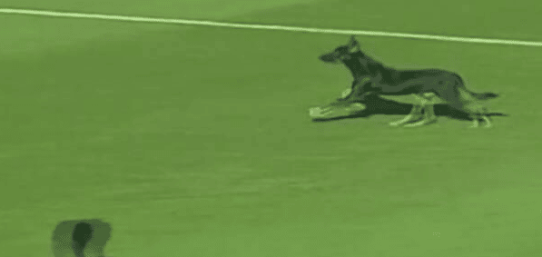 وثق مقطع فيديو متداول لقطات لاقتحام كلب للملعب خلال إحدى مباريات بطولة الدوري المصري، وتسبب في إيقافها.