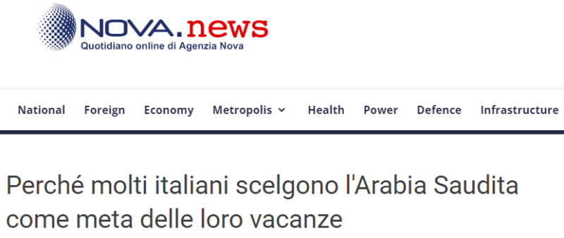 وقالت الوكالة الإيطالية: السياح الإيطاليون مفتونون بنفس القدر بالتراث الأثري للمملكة، على سبيل المثال، فإن العلا هي عبارة عن متحف في الهواء الطلق، والرياض بآثارها محبوبة للغاية من قبل سياحنا الذين يسعون إلى فهم البلد من خلال دراسة أصولها.