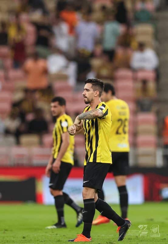 وواصل الفريق الأول لكرة القدم بنادي الاتحاد ضغطه لتعزيز تقدمه بهدف ثان، وحصل على ركلة جزاء سددها عبدالرزاق حمدالله بنجاح عند الدقيقة 45، لتشتعل المباراة وسط سيطرة من أصحاب الأرض.