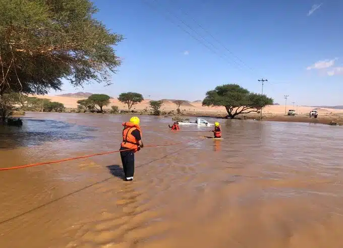 ونشر الدفاع المدني صورة أثناء عملية الإنقاذ.