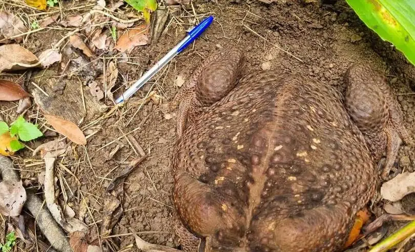 وأردفت أن الضفدع يشبه كرة القدم بأرجل. وبلغ طول البرمائية التي تزن 2.7 كيلوغرام 25 سنتيمترًا. وأطلق موظفو الوزارة على الضفدع الضخم Toadzilla.