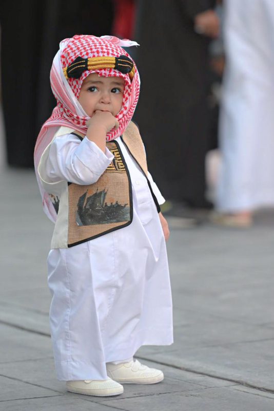 حرص الزوار على ارتداء الأزياء الوطنية المعبرة عن الموروث التقليدي السعودي الذي يمتد لأكثر من 3 قرون، مستمتعين بالمقطوعات الموسيقية والأناشيد الوطنية.