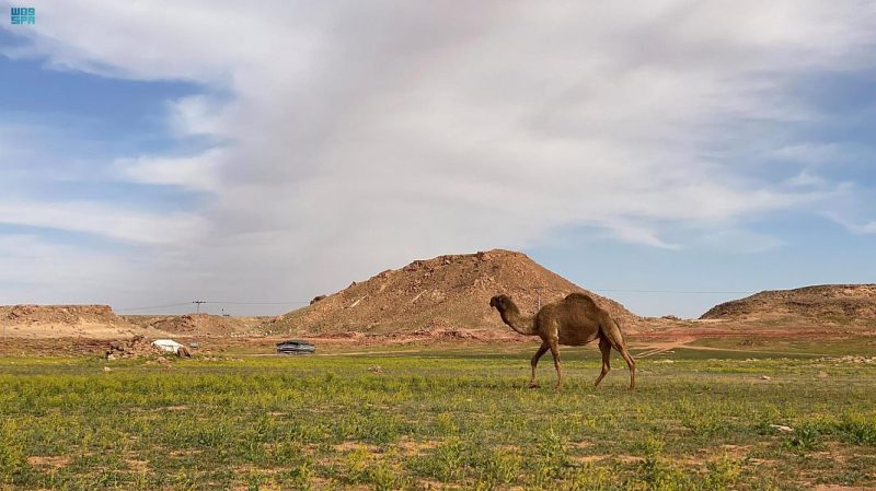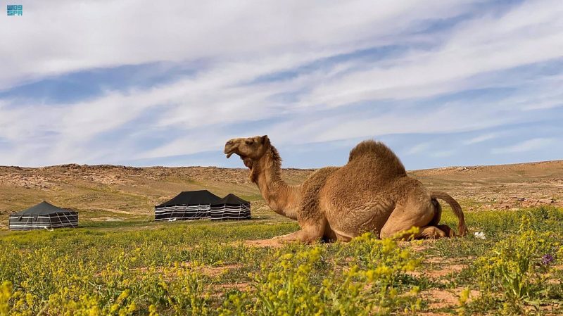 وتتزين هذه الأيام صحاري الجوف بخضرة الربيع الذي يكسو الصحاري بألوانه الجميلة وأعشابه العطرية الفواحة فراشاً أخضر تزينه الزهور الملونة.