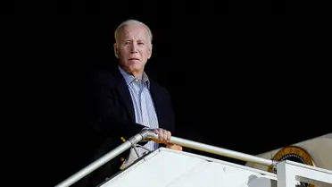 وتعثر بايدن، 80 عامًا، لفترة وجيزة، ووضع يده لأسفل لاستعادة توازنه وهو يشق طريقه صعودًا إلى الطائرة.