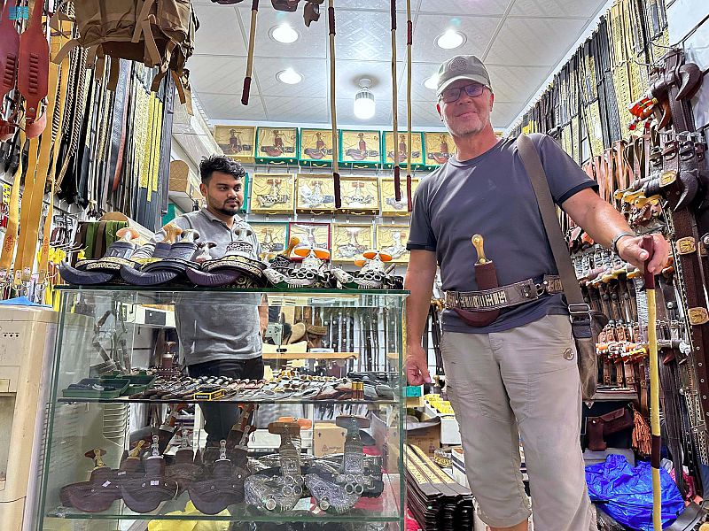 وخلال جولة – واس – في سوق الجنابي التقت بسواح غربيين من دولة سويسرا، حيث أوضح “كريستيان” أنهم قدموا إلى منطقة نجران بعد سماعهم أنها مدينة تاريخية حيث زار القصور الطينية والتاريخية بالمدينة، كما زاروا السوق للتعرف على عادة وتقاليد المنطقة لما يحتوي من صناعات شعبية وأزياء تراثية.